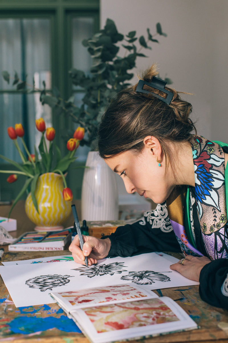 "Designed in lovely colours and patterns, often in unexpected combinations, these scarves show the work of a bold hand, never afraid to experiment and surprise."