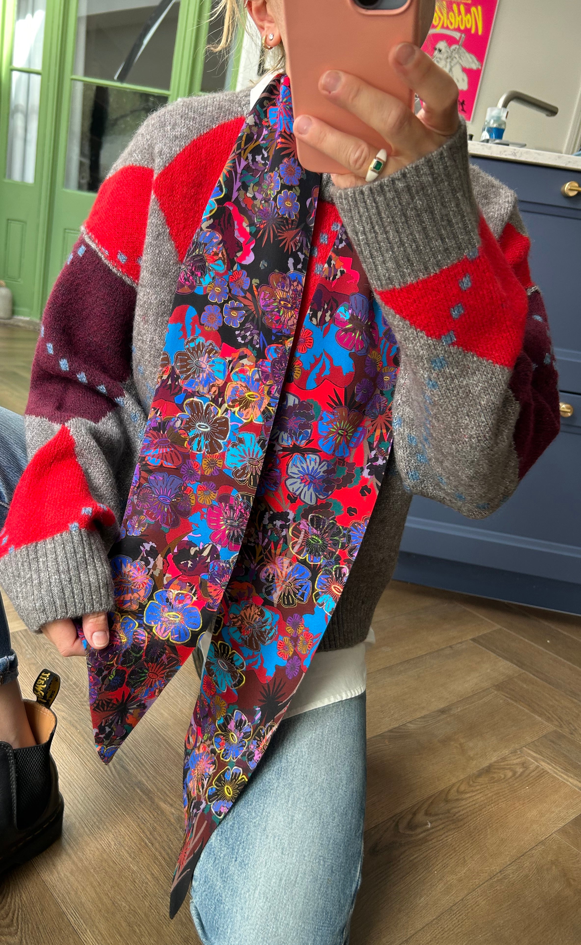 A reworking of our bestselling skinny scarf, this time on a slightly heavier crepe de chine for that ultra luxe feel. Pair it with your block print t-shirts and trainers as much as getting suited and booted. We LOVE it.