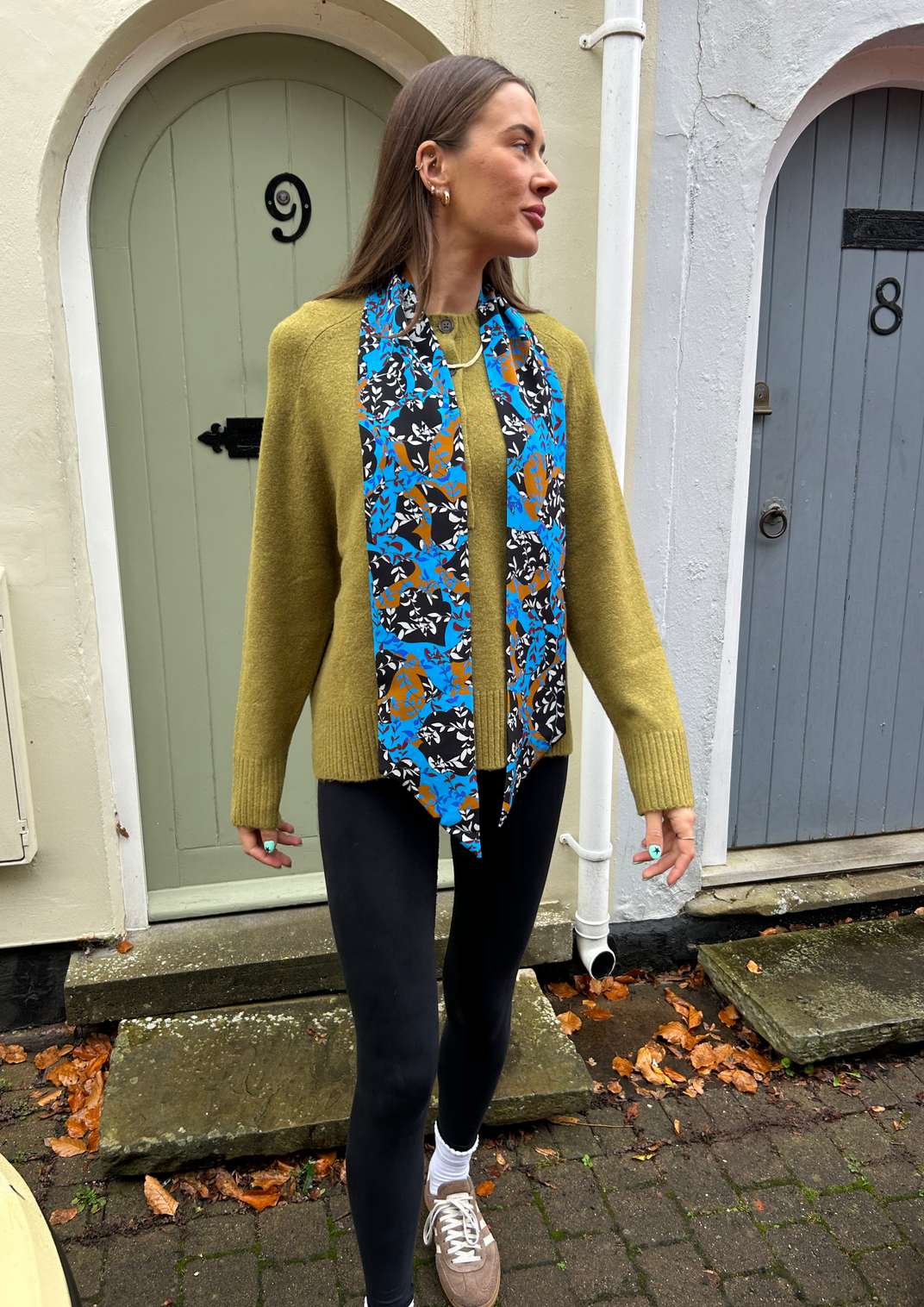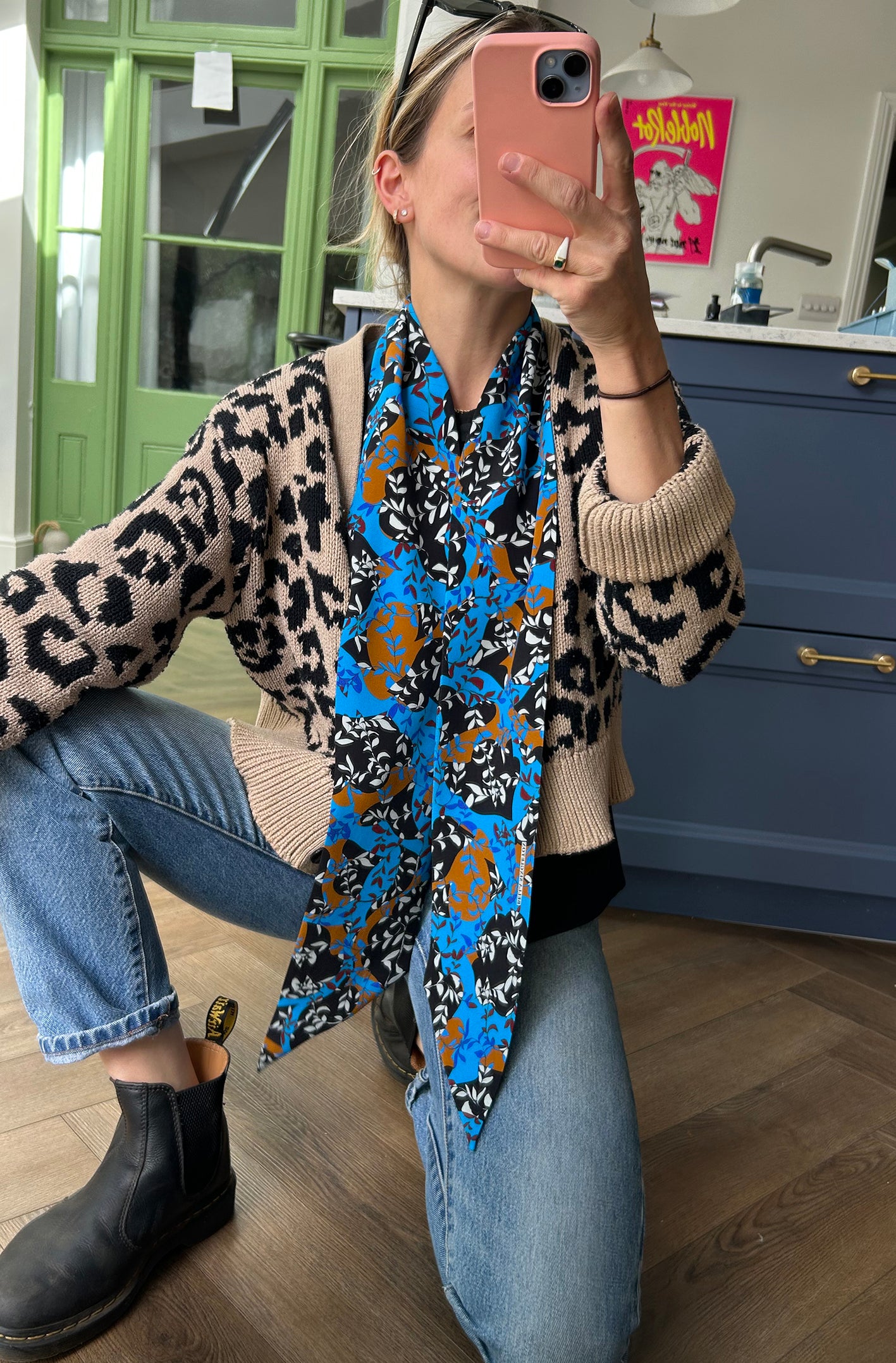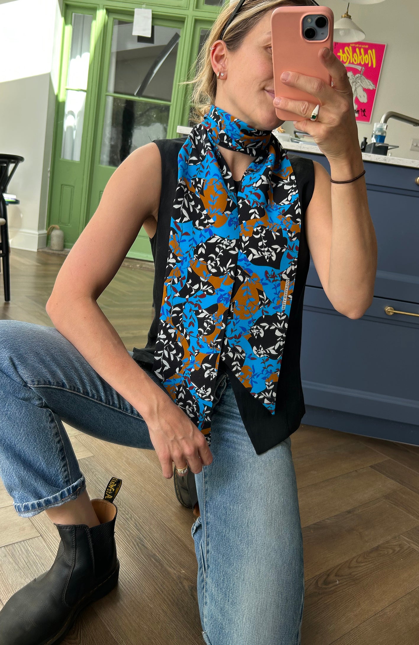 A reworking of a bestselling skinny scarf on a slightly heavier crepe de chine for that ultra luxe feel. Pair it with your block print t-shirts and trainers as much as getting suited and booted. We love this design for its artful and bold look.